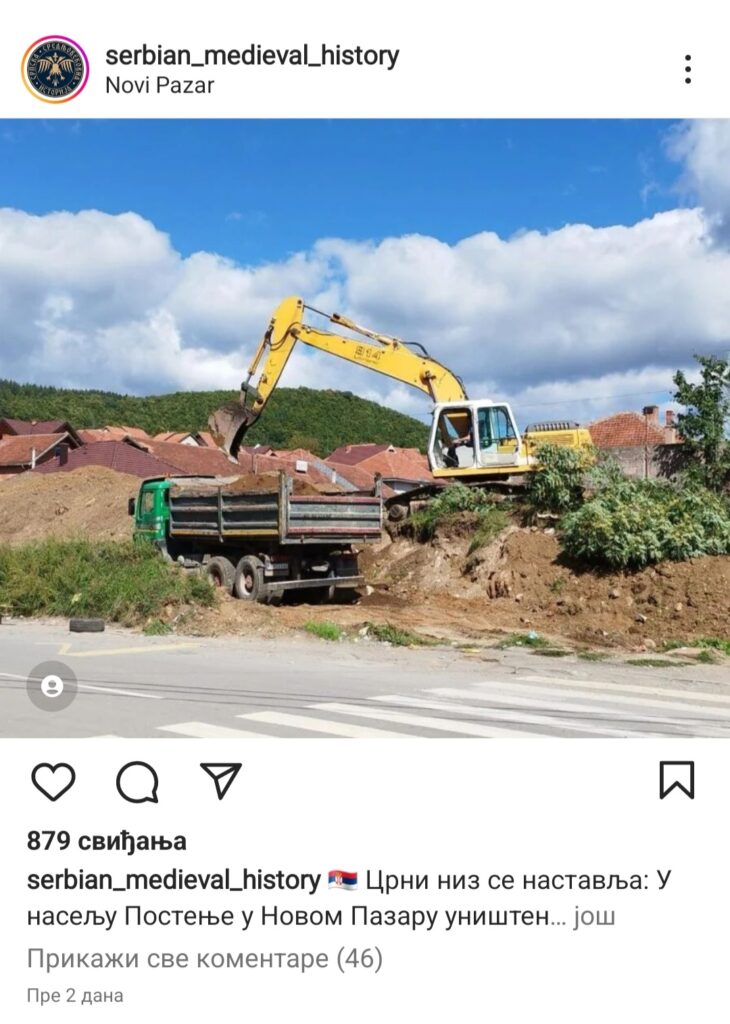 Arheološki lokalitet Latinska crkva u Postenju u Novom Pazaru uništen je u potpunosti, a nekoliko dana ranije uništeno je groblje koje se prostiralo zapadno od ostataka ovog istorijskog verskog objekta.