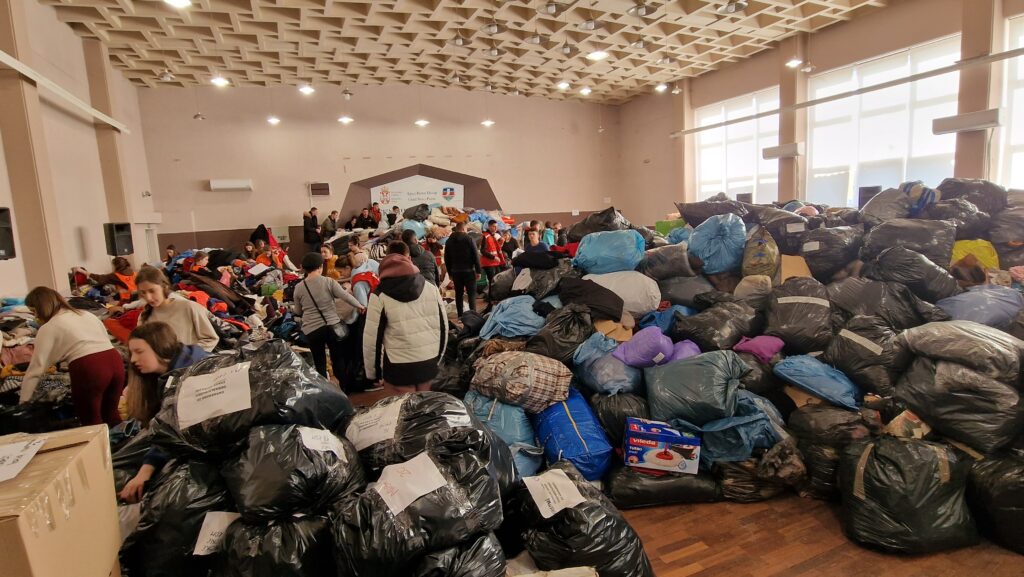 Brojna humanitarna udruženja poslala su svoje volontere koji pakuju robu i pripremaju je za transport.