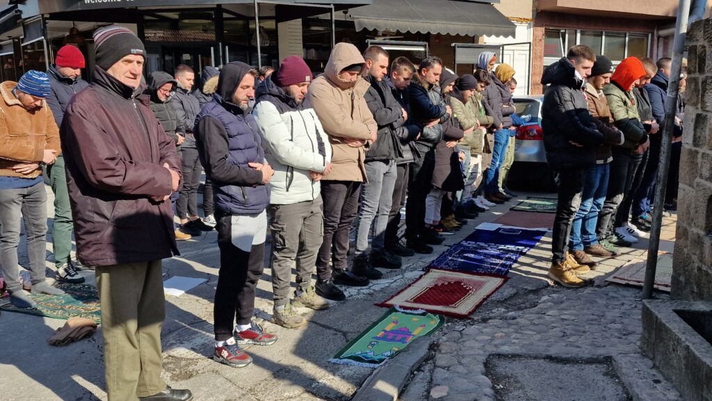 U Lejlek džamiji u Novom Pazaru namaz je obavio veliki broj vernika, mnogi od njih klanjali su ispred džamijskog harema jer unutra nije bilo dovoljno mesta.